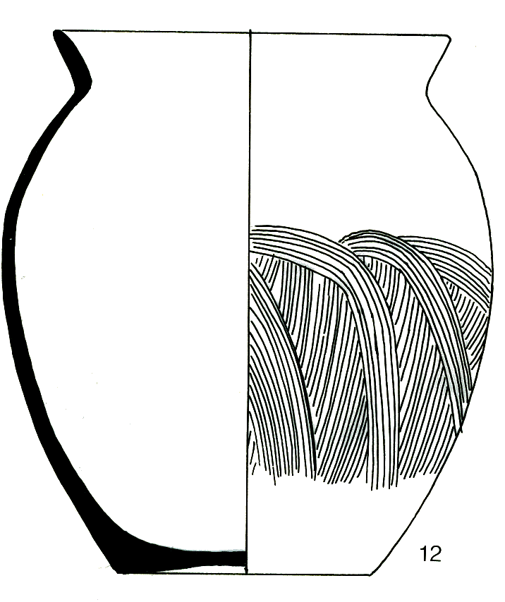 céramique tournée, couleur noire en surface et sur les cassures ; surface peignée.