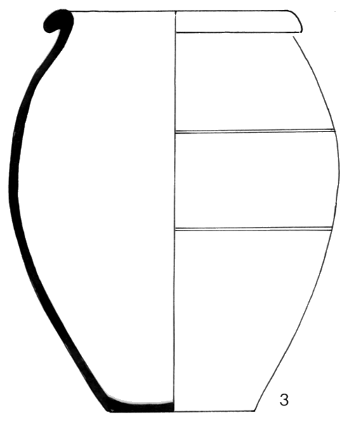 Pot de forme elliptique étirée ; encolure rentrante, rectiligne, rebord épaissi à l'extérieur,