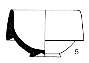 Bol de forme hémisphérique ; lèvre ronde ; pied en couronne bas aux parois divergentes rectilignes ;